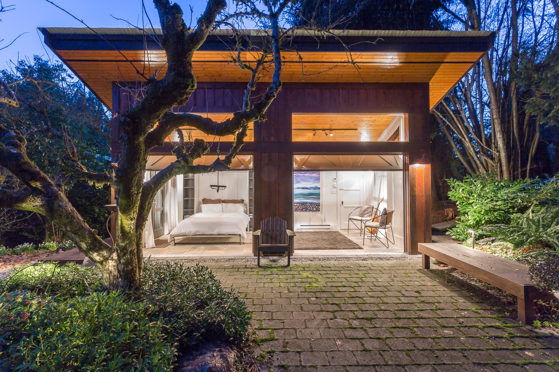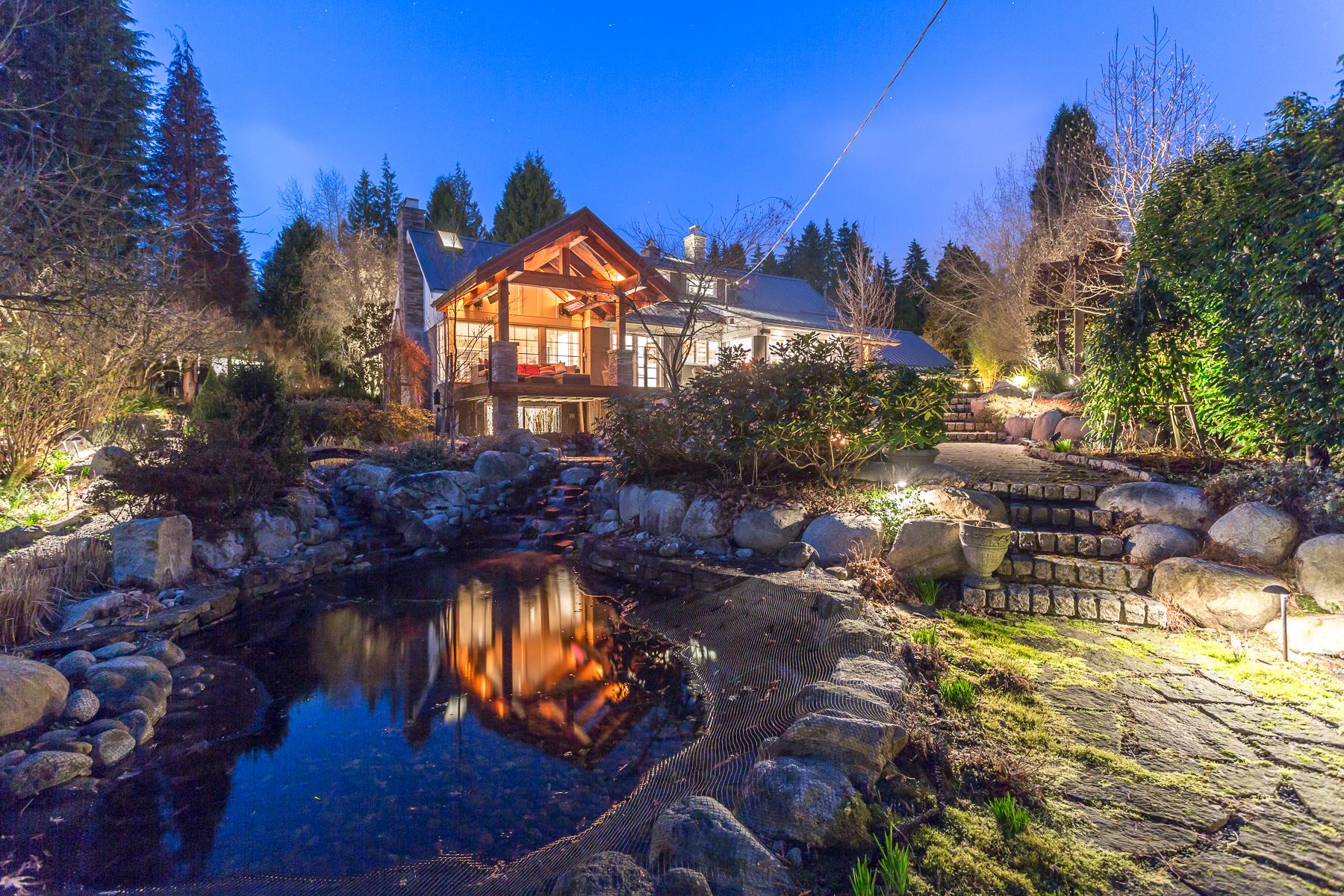 Gorgeous lower British Properties private country estate renowned for its magnificent gardens. This modern craftsman cottage style home has been beautifully restored and updated over the years, and includes heated slate floors, in addition to the original hardwood. A large gourmet kitchen featuring Fisher Paykel appliances is a chef's delight. A heated outdoor lanai overlooks a serene series of beautiful ponds and waterfalls. The property also features a separate artist’s studio/yoga/fitness room/office or guest quarters. This is the perfect property for those who appreciate country living and beauty at its best, but who would also like the convenience of living close to downtown Vancouver.