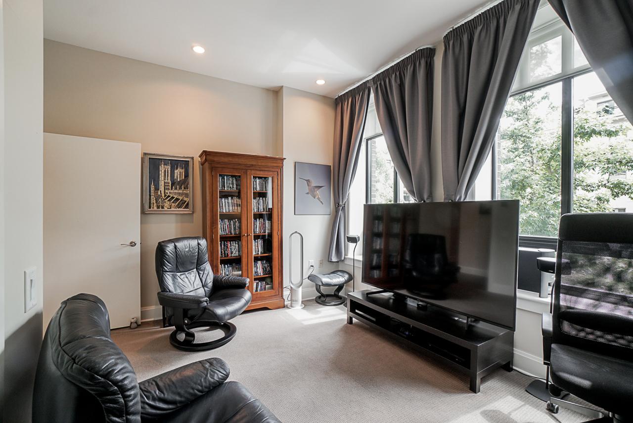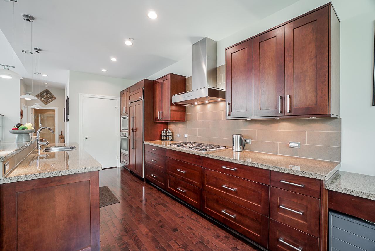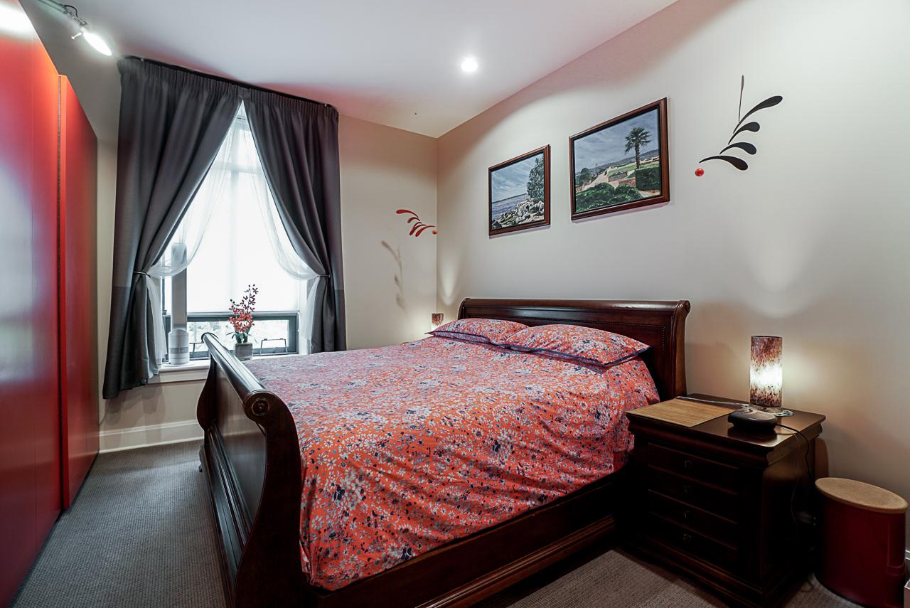 Experience the benefits of this superior spacious apartment, offering quality town and country living. This deluxe 1660 sq ft home has a grand open plan concept with high ceilings and hardwood floors, featuring floor to ceiling windows and in- floor radiant heat for winter comfort. During the hot summer months the air conditioning maintains a constant temperature, giving a perfect environment, just for you! The kitchen has granite counter tops and s/s Miele and sub-zero appliances. The two bedrooms each have generous sized en-suites. This friendly, four story, 13 apartment, adult-orientated building is located in a tree-lined, tranquil cul-de-sac, which leads to nearby trails, shops and restaurants. Underground large parking spot and storage locker is included. What more could you wish for!