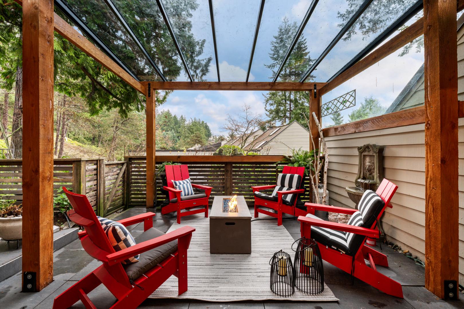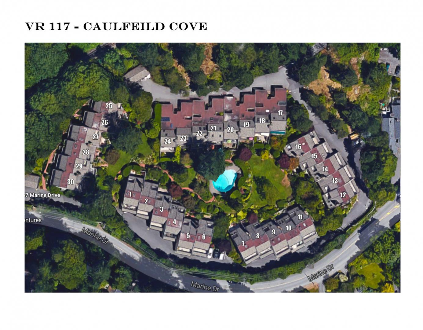 Rarely available and beautifully updated, this spacious 4-bedroom, 3-bathroom end-unit townhome offers the perfect blend of luxury, comfort, and convenience — ideal for both families and downsizers alike! Recent upgrades include: All brand-new double-glazed windows throughout with new sliding patio doors, two large, newly updated sundecks, fresh interior custom paint, new LED lighting, plush new carpeting, hot water on demand, plus expansive outdoor patio with custom-designed glass-covered pergola — perfect for year-round entertaining! This spectacular open-plan residence features soaring vaulted ceilings, a cozy gas fireplace, and an abundance of natural light. Townhome #25 is one of the largest and most private homes in the complex, offering 2497 sq ft of exceptional comfort and functionality. The detached carport accommodates two vehicles and includes a Level 2 EV charger. Caulfeild Cove is an award-winning 4.5-acre community renowned for its beautifully landscaped gardens and outdoor heated pool. A prime location — just minutes to Caulfeild and Rockridge Schools, Lighthouse Park, Tiddly Cove, Caulfeild Village Shopping Centre, and West Vancouver’s public transit network. Experience the best of living in this stunning, move-in-ready townhome!